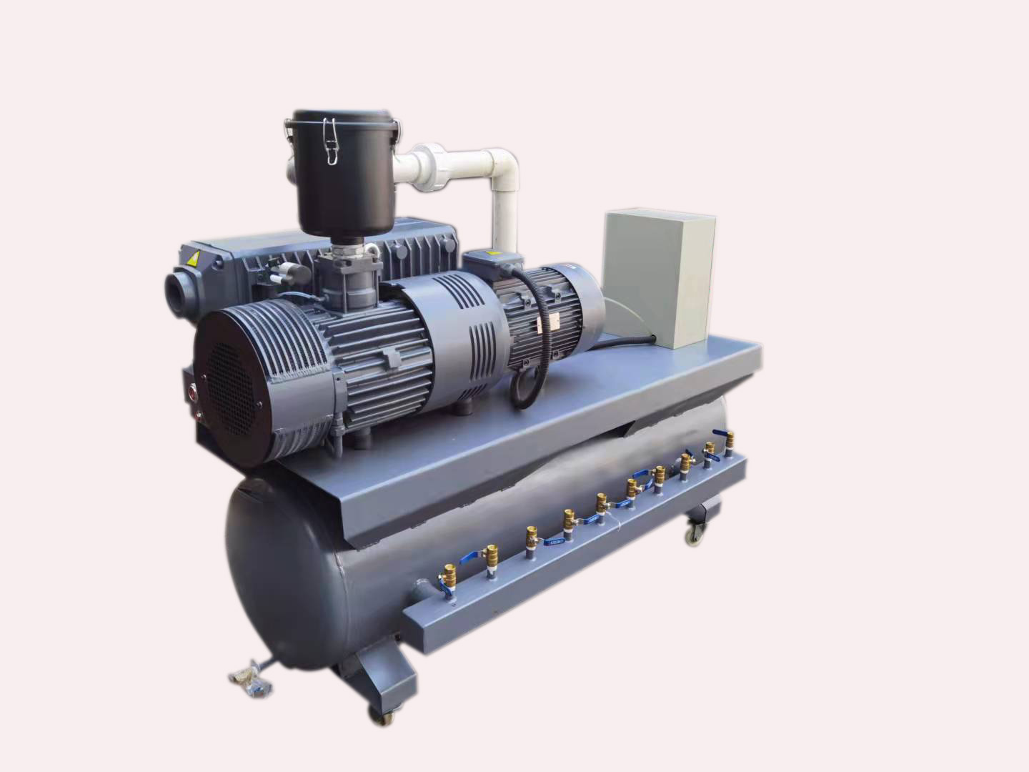 由真空泵、PLC程序控制系統(tǒng)、真空儲(chǔ)氣罐、真空管道、真空閥門、外置過濾總成等組成的成套真空系統(tǒng)。目前,該系統(tǒng)廣泛應(yīng)用于電子半導(dǎo)體業(yè)、光電背光模組、機(jī)械加工等行業(yè)。